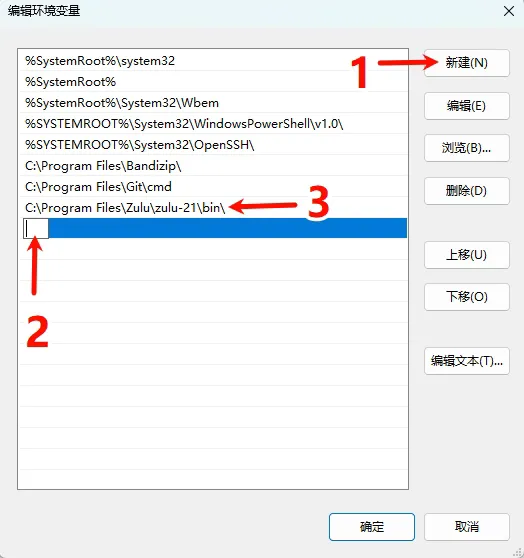 可以看到,在名为“编辑环境变量”的界面中,我安装包安装的两个 Java(Zulu 8 和 Zulu 21)都有环境变量(红框部分)。