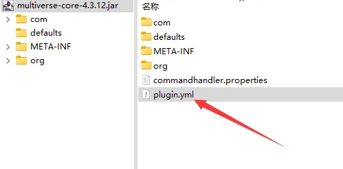 用解压缩软件打开插件的 jar 文件就可以看到 plugin.yml